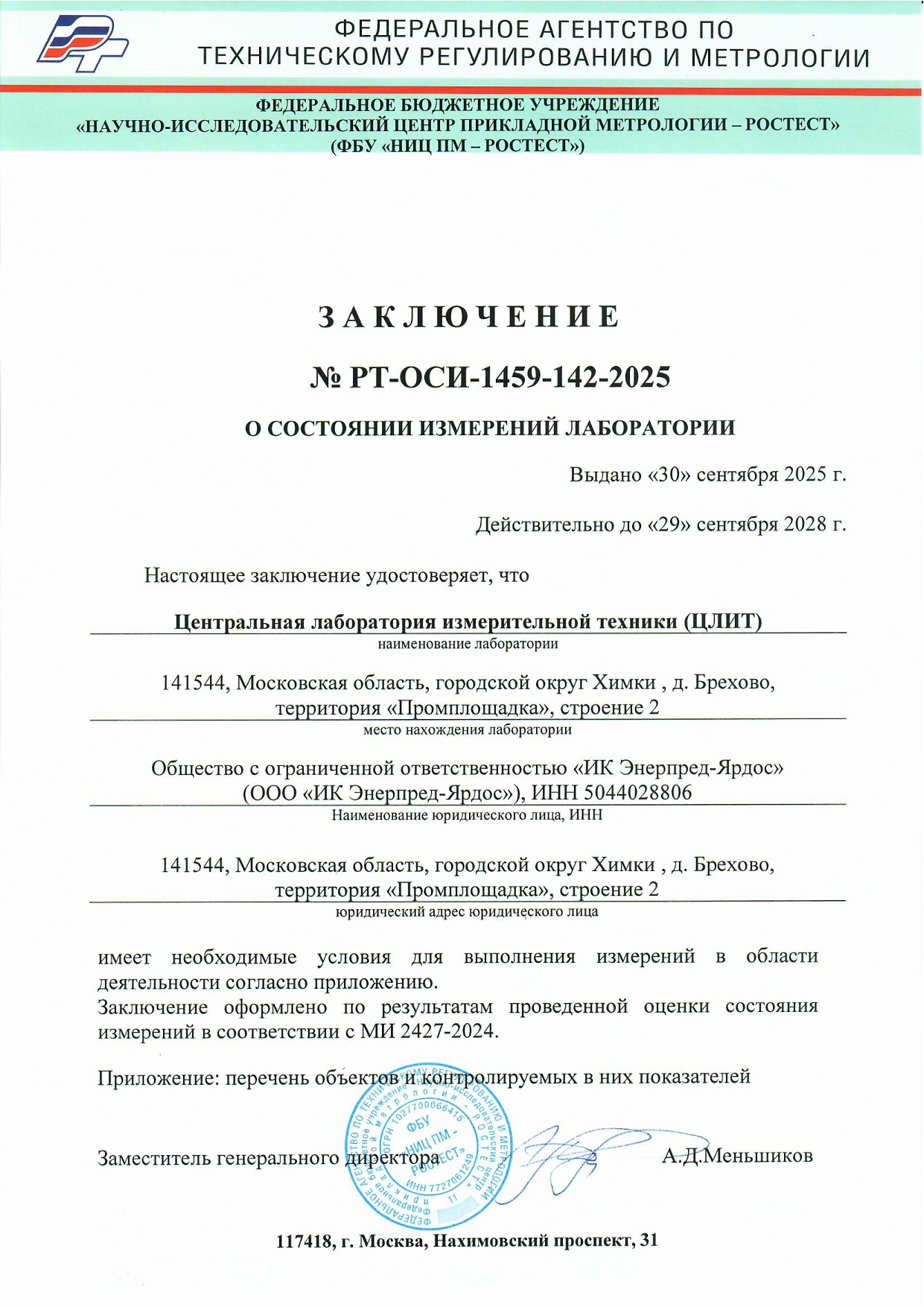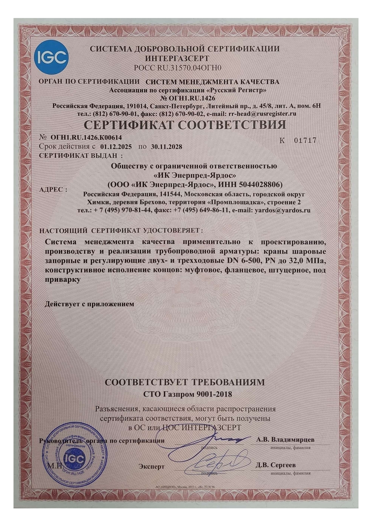 Система менеджмента качества ООО "ИК Энерпред-Ярдос" соответствует требовани ГОСТ Р ИСО 9001-2015, СТО Газпром 9001-2018.