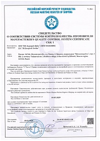 Свидетельство о соответствии системы контроля качества изготовителя Российским морским регистром судоходства