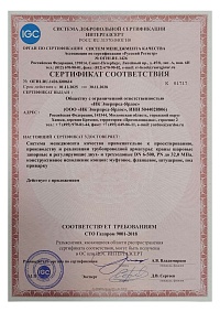 Интергазсерт. Сертификат соответствия СМК требованиям СТО Газпром 9001-2018